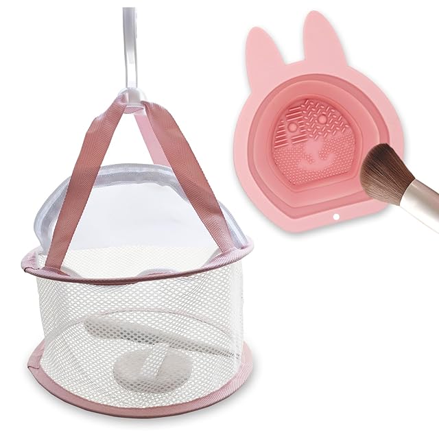 Hamth9 メイクブラシクリーナー メイクブラシ 洗浄 化粧ブラシクリーナー シリコンボウル 乾燥ネット (ピンク)