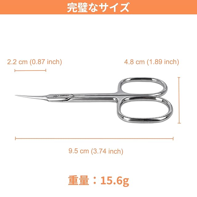 商品名:THRAU 超精密甘皮切り 手術用グレードのステンレス製、六面研ぎ刃で製作されたハサミ。角質処理、甘皮処理、ささくれ修正のための爪切りとして使用でき、また眉毛、まつ毛、鼻毛、髭、爪のケアにも適しています