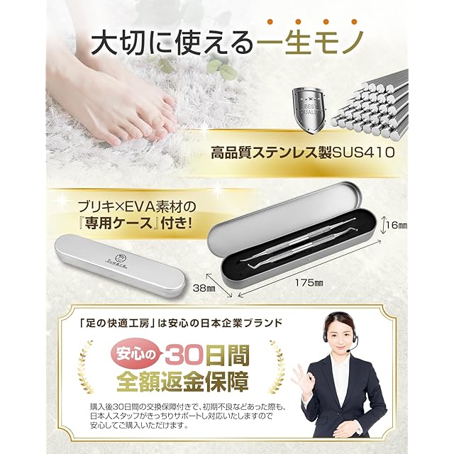 ✅【巻き爪の専門家が監修】足の快適工房の爪垢取りは、巻き爪専門院院長の鈴木洋先生が監修。専門知識と経験に基づき、「安心して手軽に使える」ことを追求しました。爪垢取りと爪やすりのセット商品で、巻き爪ケアにも有効です。✅【専用ケース付き】「清潔に保管したい」というお声から、専用ケースをお付けしました。紛失防止・旅行先への携帯性に役立ちます。一生モノとして大切にお使いいただけます。