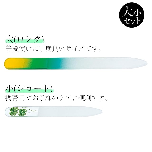 商品名:ガラス製爪やすり 大小2個セット ネイルケア 水洗い可 子ども ペット 携帯用 つめやすり 両面削れる チェコ製