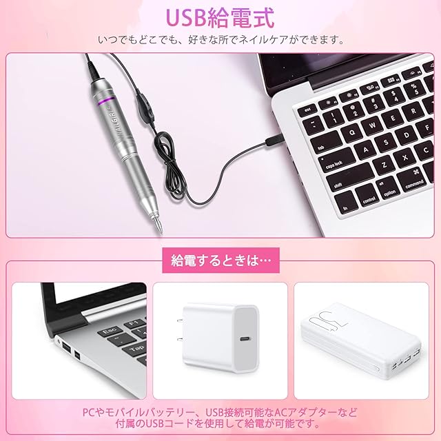 【安全で使いやすい】ドリルビットは工具なしで簡単に交換できます。 引き出して差し込むだけです。 USB電源コードを差し込むだけで動作します。ネイルケアは始まります。 ★ご購入日より12ヶ月のメーカー付きです。なんの不明点がございましたら、いつでもお気軽にご連絡してください。