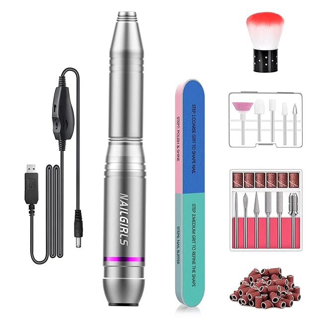 【ネイリスト推薦】 NAILGIRLS 電動ネイルマシン 11個のビット ネイルマシン 電動ネイルケアキット ネイルケア ジェルネイルケア オフ ネイルドリルマシン 研磨 爪磨き 甘皮処理 角質除去 正逆回転 低振動 マニキュア対応 無段階変速 USB給電 コンパクト 手足両用 25000rpm最大 自宅サロン用(グレー)