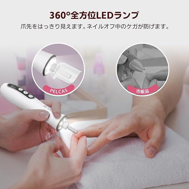 商品名:PELCAS電動ネイルマシン 10個のビット ネイルマシーン ジェルネイル オフ キットネイルケアセット 爪磨き 爪やすり 甘皮処理 甘皮ケア 正逆回転 10段階変速 ホワイト