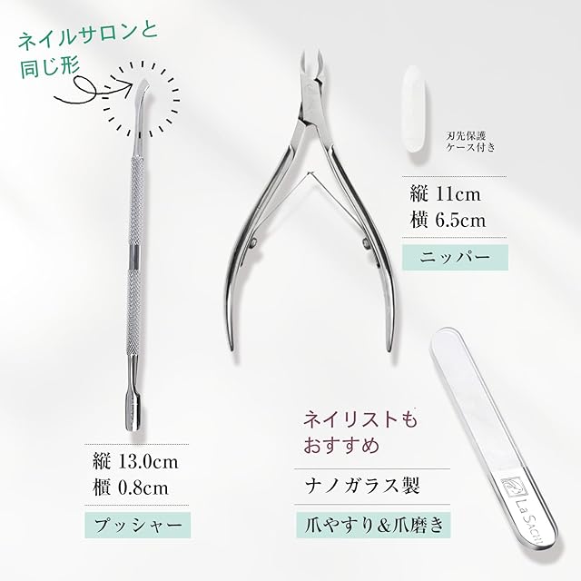 商品名:La SACHI キューティクル ニッパー 甘皮 処理 セット プッシャー 爪やすり 手指 ケア セルフ ジェル ネイル 甘皮切り マニキュア ささくれ