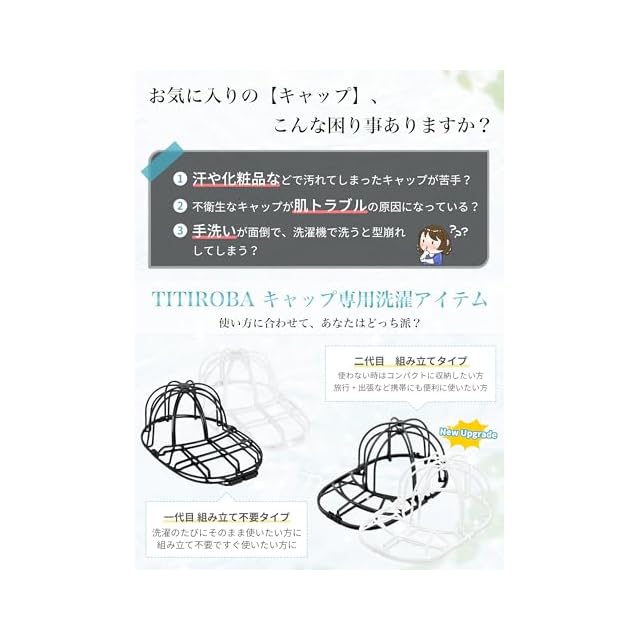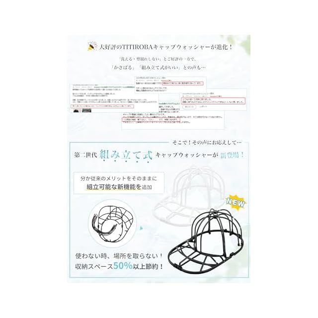 【着脱式のNEWモデル】 チチロバ(TITIROBA) キャップウォッシャー 二代目 帽子 洗濯 型崩れ防止 着脱式 専用洗濯ネット付き 洗濯機で丸洗い キャップホルダー 野球帽ウォッシャー 吊り下げ収納 ホワイト