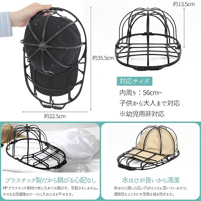 1. 【型崩れ防止】HINACOのキャップウォッシャーは、洗濯中に帽子の形をしっかりとキープします。これにより、お気に入りの野球帽やキャップが洗濯後も新品同様の形を保ち、長く愛用することができます。 2. 【簡単手入れ】洗濯ネット付きで、帽子を洗濯機にそのまま入れるだけの簡単ステップ。手間いらずで、忙しい日常でも手軽に帽子を清潔に保つことができ、時間を有効に活用できます。 3. 【洗濯機対応】このキャップウォッシャーは洗濯機での使用に最適化されており、手洗いの手間を省きます。これにより、帽子の洗濯がより効率的になり、他の家事に時間を割くことができます。 4. 【大人用・子供用対応】大人用から子供用まで幅広いサイズに対応しているため、家族全員の帽子を一度に洗うことが可能です。これにより、家族全員が清潔で快適な帽子を楽しむことができます。 5. 【安心の品質】HINACOのキャップウォッシャーは耐久性のある素材で作られており、繰り返しの使用にも耐えます。これにより、長期間にわたって安心して使用でき、コストパフォーマンスも優れています。