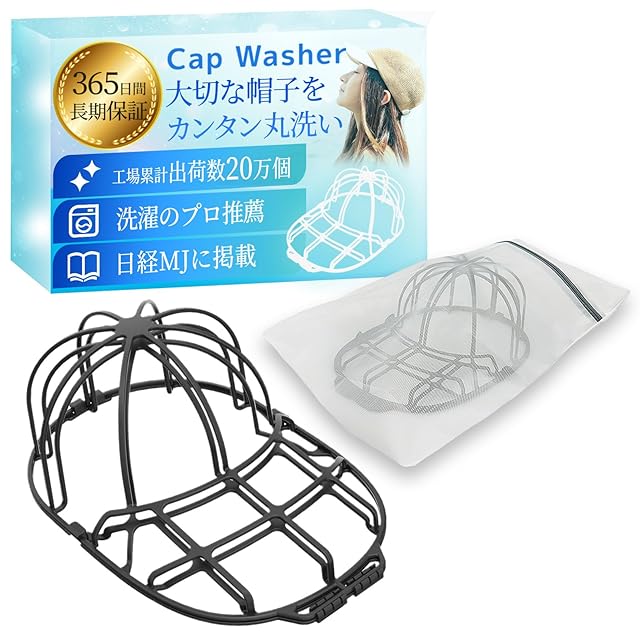 キャップウォッシャー【日本正規品】【現役クリーニング師推薦】 帽子 型崩れ防止 【日経MJ掲載】洗濯機 【洗濯ネット付】野球帽ウォッシャー 大人用 子供用 洗濯機 ラック簡単 収納 吊り下げ収納 (ブラック) Black
