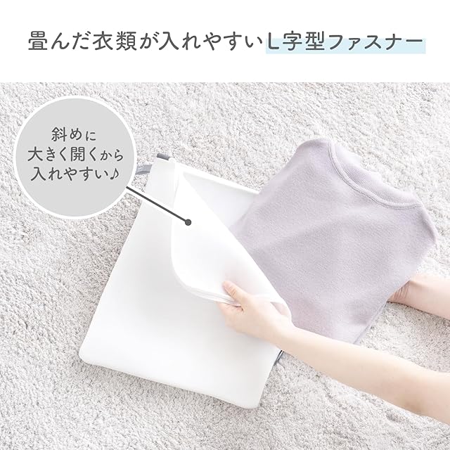 特徴2:衣類を入れやすい、大きく開くL字ファスナー