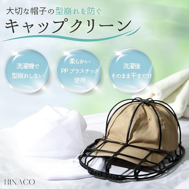 1. 【型崩れ防止】HINACOのキャップウォッシャーは、洗濯中に帽子の形をしっかりとキープします。これにより、お気に入りの野球帽やキャップが洗濯後も新品同様の形を保ち、長く愛用することができます。 2. 【簡単手入れ】洗濯ネット付きで、帽子を洗濯機にそのまま入れるだけの簡単ステップ。手間いらずで、忙しい日常でも手軽に帽子を清潔に保つことができ、時間を有効に活用できます。 3. 【洗濯機対応】このキャップウォッシャーは洗濯機での使用に最適化されており、手洗いの手間を省きます。これにより、帽子の洗濯がより効率的になり、他の家事に時間を割くことができます。 4. 【大人用・子供用対応】大人用から子供用まで幅広いサイズに対応しているため、家族全員の帽子を一度に洗うことが可能です。これにより、家族全員が清潔で快適な帽子を楽しむことができます。 5. 【安心の品質】HINACOのキャップウォッシャーは耐久性のある素材で作られており、繰り返しの使用にも耐えます。これにより、長期間にわたって安心して使用でき、コストパフォーマンスも優れています。
