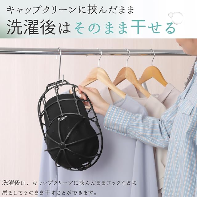 【帽子が丸洗いできる】キャップクリーンを使うことで、帽子の汗やにおいをしっかりと洗い流し、清潔な状態を保つことができます。特に、汗やにおいが気になる方に最適です。
