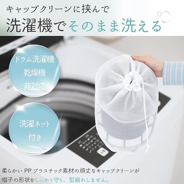 【専用洗濯ネット付き】帽子をさらに保護したい方には、付属の専用洗濯ネットを使用することで、より安心して洗濯が可能です。