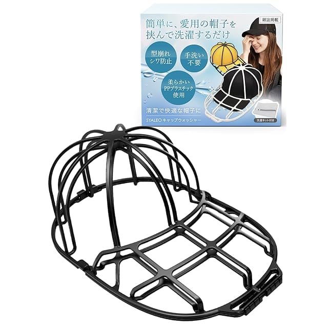 【雑誌掲載】SYALEO キャップウォッシャー 帽子 洗濯 キャップ洗濯 型崩れ防止 洗濯ネット 帽子ハンガー 野球帽洗濯 洗濯機使用可 大人用 子供用 サイズ対応 簡単お手入れ 洗濯ネット付属 (ブラック)