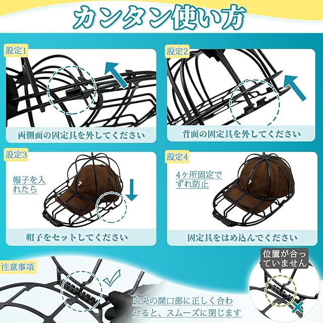 【洗濯機で簡単!帽子の型崩れ防止】帽子ハンガー洗濯型崩れ防止設計で、手洗いでは落ちない頑固な汚れ・ニオイをしっかり除去。忙しい日も洗濯機にポン入れで時短。大切な帽子を長く美しく保ちます。キャップウォッシャー。
