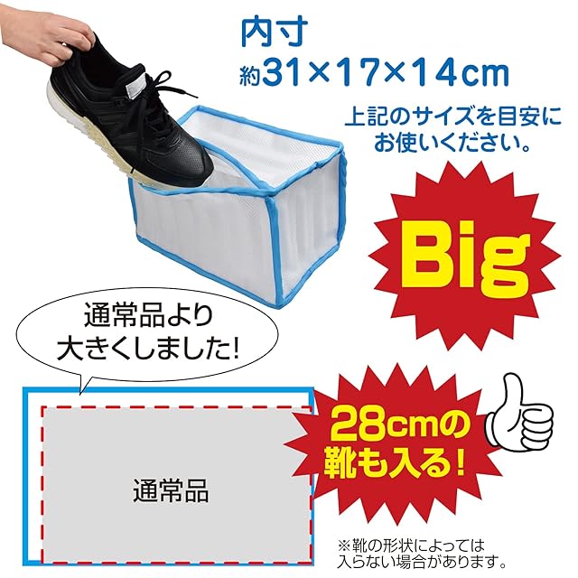 お子さまサイズであれば2足分をまとめて洗濯ができます。 28cmの靴にも対応。(靴の形状により入らない場合があります)
