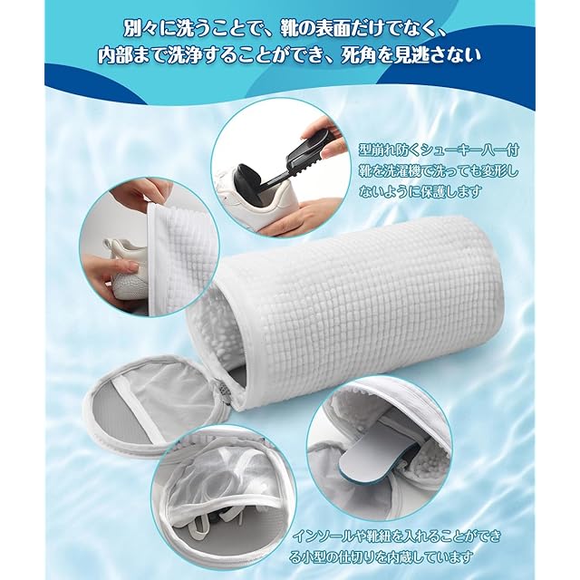 【大事な靴を保護】靴は洗濯ネット中にいれて、靴が擦れず、靴の型崩れ、損傷や靴の変色を防ぎます。洗濯機の回転時の傷防止可能です。靴の変色大切な靴も安心して洗えます。