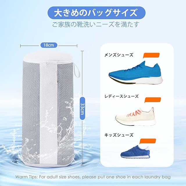 【洗濯機対応で手軽に靴洗い】 洗濯機対応のこの靴洗いネットは、手洗いの手間を大幅に削減。靴をネットに入れ、ファスナーを閉じて洗濯機にセットするだけでOK。洗濯中に靴が引っかかったり絡まったりする心配もなく、靴洗いが簡単で効率的です。