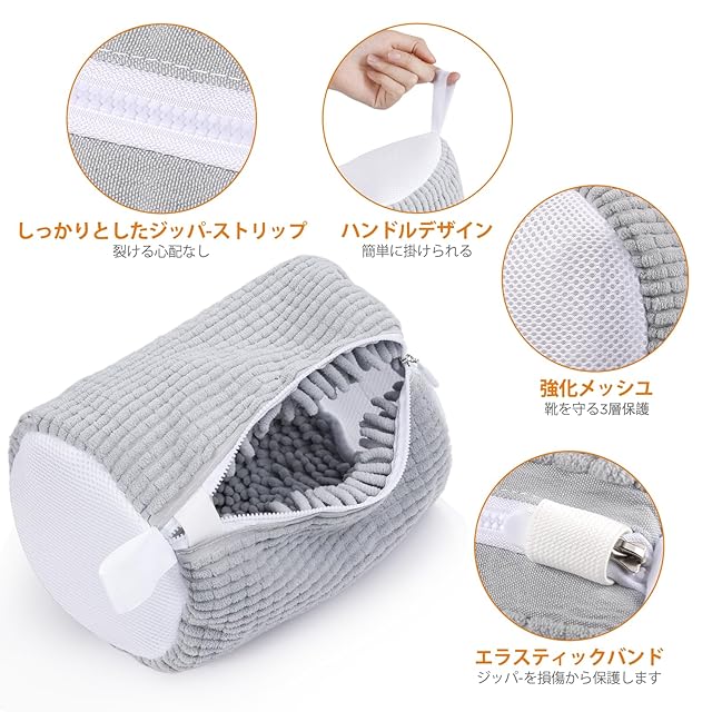 <b>内容:</b><br>洗濯機用靴洗いバッグ 2 個、12 か月のカスタマー サポート サービス。<br><br>靴洗いバッグがあれば、靴を手で洗う必要はもうありません。靴を洗濯バッグに入れて洗濯機に入れるだけです。洗った後は新品のようになります。頑固な汚れは事前に洗浄し、最も汚れている場所はブラシでこすります。<br><br><b>ハンドル付き</b><br>靴洗いバッグにはハンドルが付いており、手で簡単に持ち運べます。また、バスルームやランドリールームのフックに掛けて、洗濯サイクルごとに簡単に使用できます。<br><br><b>10,000+ シェニール マイクロファイバーの特徴</b><br>繊維が密で、構造が柔らかく、吸水性と包み込み性が良く、吸水性と汚れ落としに適しています。<br><br><b>仕様: </b><br><b>サイズ: </b>22 x 19 cm<br><b>素材: </b>1200 GSM シェニール織物 + 230 GSM サンドイッチ織物<br><br><b>注意:<br>洗濯温度: 60°C まで<br>乾燥機には入れないことをお勧めします