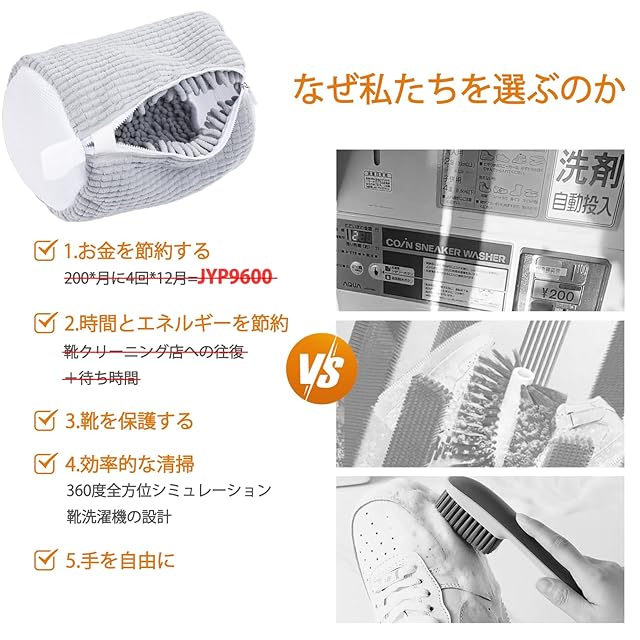 【お金、時間、労力を節約】靴を洗うためにクリーニング店に往復するのに多額のお金と時間を費やす必要はありません。また、面倒な手洗いも不要で、手を解放し、袋に入れて投入するのにわずか5 秒です!