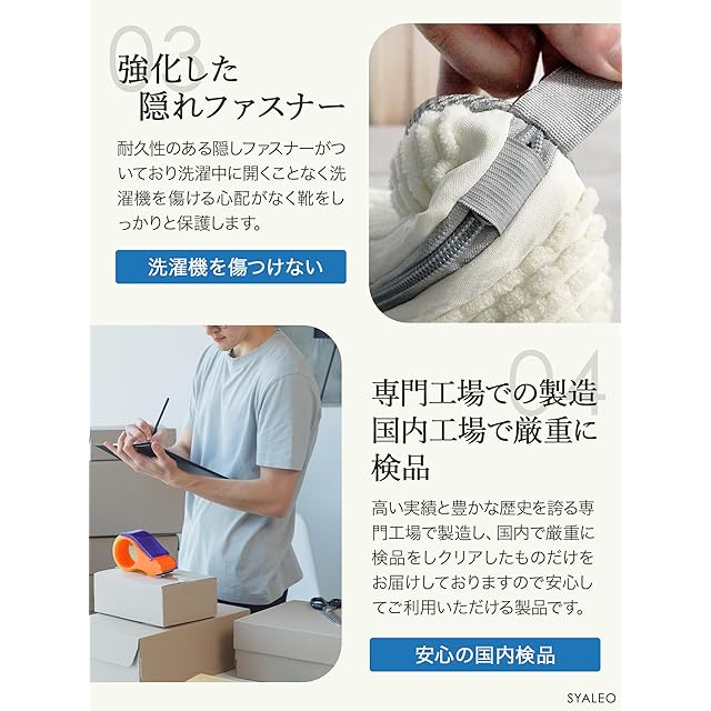 【強化した隠れファスナー】高品質・耐久性に優れた隠しファスナーがついており、洗濯中に開くことがなく洗濯機や大切な靴を傷ける心配がありません。※洗濯中に洗濯ネットが開いてしまわないよう、ジッパーをしっかり最後まで閉めてから洗濯機を回してください。