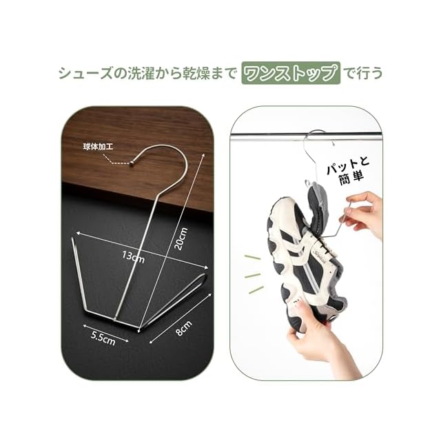 【靴専用ハンガー付き】硬化ステンレス製の靴専用ハンガー付き!球体加工があり、安全性UP!靴を優しく支え、通気性を確保することで、素早く効率的に乾燥できる。コンパクトな設計で、収納も楽々。