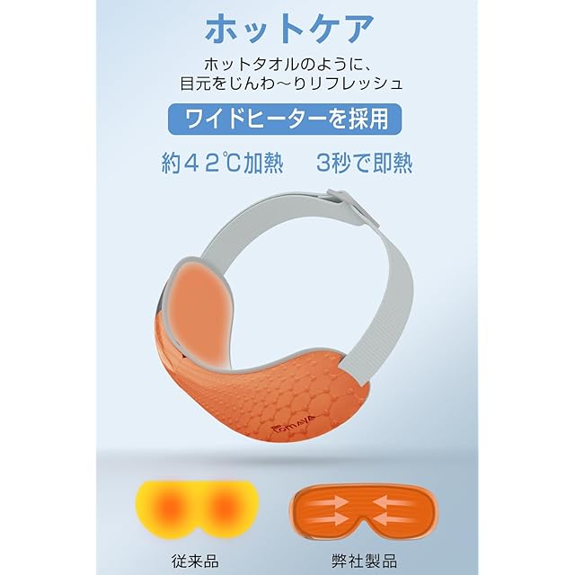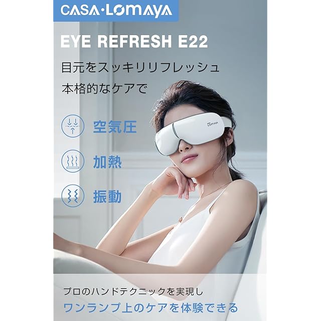 【極上の目元エステをご自宅で】発熱範囲UP・エアバッグサイズUPで目の周りからこめかみまでしっかりケアしてくれるアイウォーマーです。グランフェン製のワイドヒーターを採用、3秒即熱、ホットタオルのように目元全体をくまなくじんわ~りリフレッシュ!また、6つのエアバッグが配置されることにより、こめかみまで細かくほぐしてくれるアイケア !さらに、「振動」機能を加えることで、より深くアプローチし、スッキリ感アップ!明るい印象の目元に導きます。