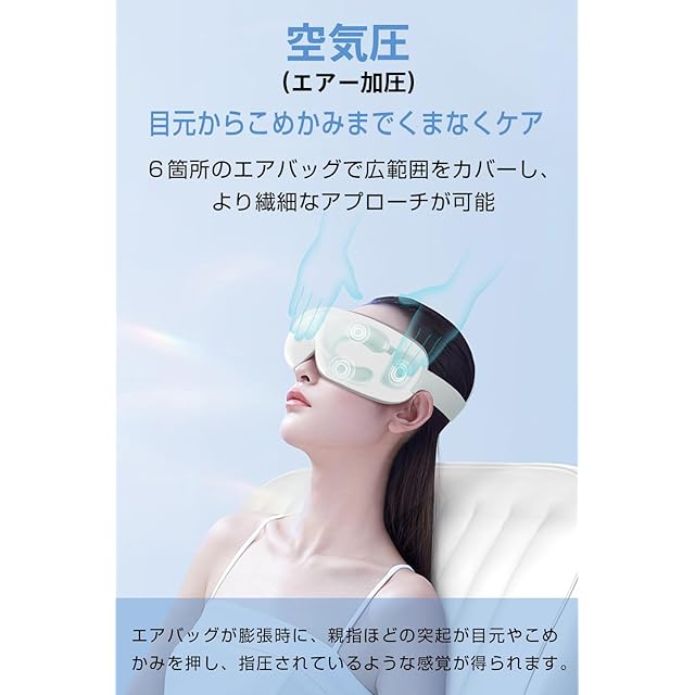 商品名:【2025新設計 360°エアバッグ】 アイウォーマー ホットアイマスク 折り畳み式 睡眠専門医監修 目元ケア 目元エステ (振動×空気圧xグラフェン加熱) USB充電式 Bluetooth音楽 自動オフタイマー 液晶ディスプレイ 簡単操作 軽量 折り畳み 記念日 御祝 誕生日プレゼント 母の日ギフト 男女兼用 日本語説明書付 (ホワイト)