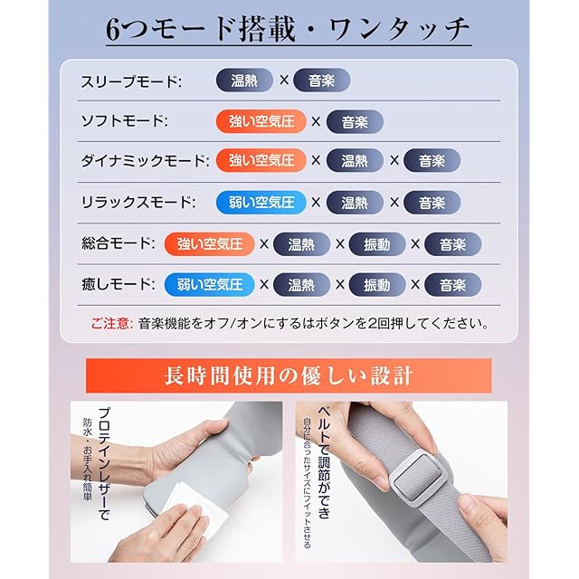 【2025年秋新登場・UPしたアイウォーマー】AQielev アイウォーマーは、市販の睡眠用アイマスクとは異なり、心を込めて 6 種類のモードを設計!さらに「強 / 弱」2 段階の圧力モードも搭載し、ワンボタン操作でユーザーの様々な目の状態やニーズに柔軟に対応できます。6箇所のエアパッグで広範囲をカバーし、軽やかなリラックス感からしっかりとした圧力感まで、目頭からこめかみまでを的確に包み込むアプローチで目元をリラックスさせ、より織細なアプローチが可能。「※注:2 段階の圧力レベル(強 / 弱)は 6 種類のモード内に予め反映されており、別途調整する必要ない」