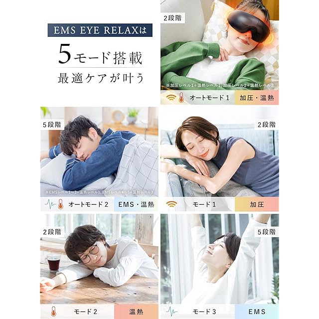 【リフレッシュ EMS×じ~んわり温熱】2段階温熱機能を搭載、温熱レベル1は38±3℃で、温熱レベル2は42±3℃です。装着後、目元を15分ほど温めることでお顔全体にも熱が伝わります。※感じ方には個人差があります。