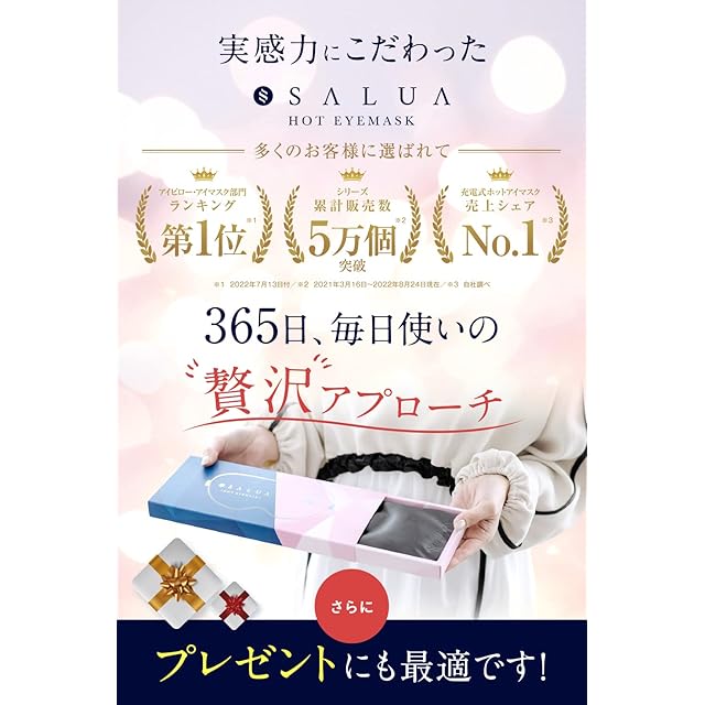 ✅【使いやすい コードレス でストレスフリー】 安眠 や目の疲れなどに使いたい ホットアイマスク 。実は ホット アイマスク の約9割がコード付きなので「コードが邪魔になる…」「重い…」とストレスになることも。そんな悩みに応えて開発されたのがSaluaの ホットアイマスク コードレス 。ストレスフリーなのはもちろん、薄型ヒーター採用で74gの超軽量!余計なイライラを感じることなく、リラックスできます♪