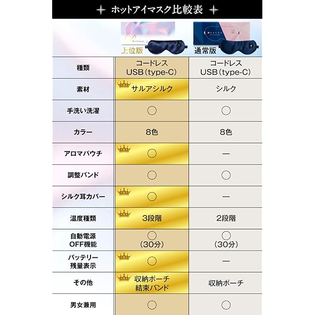 ✅【贅沢でリッチなシルク100%】プレミアムな ホット アイマスク 充電式 は独自技法のブランドシルク「SALUA SILK」を採用。輝くようななめらかなツヤを実現。蒸れにくく肌当たりの優しい6Aランク、22 匁生地を使用。ラグジュアリーな肌当たり。冬は暖かく、夏はサラッと涼しく快適!