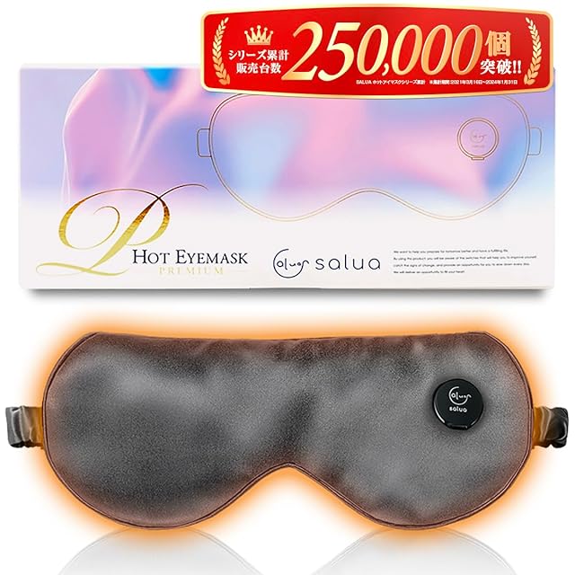 商品名:Salua プレミアム ホットアイマスク USB 充電式 6Aクラス 高級シルク 天然オイル配合パウチ付き (チャコール グレー)