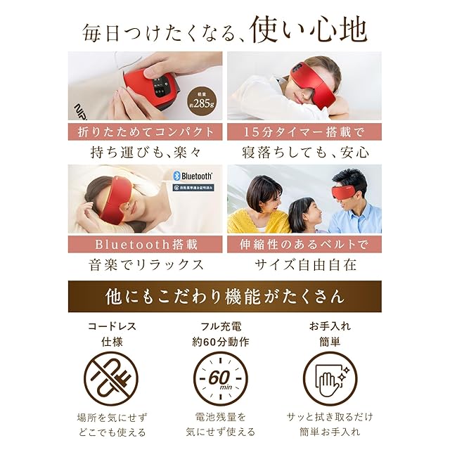 商品名:NIPLUX EYE RELAX S アイウォーマー アイマスク ホットアイマスク 充電式 目元エステ アイケア Bluetooth機能 音楽 敬老の日 誕生日 プレゼント ギフト (レッド)