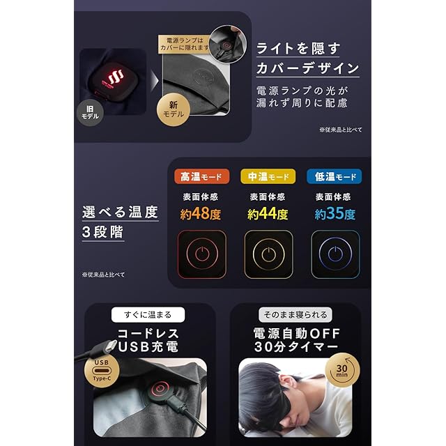 ✅【3段階の温度調整&オートオフ機能】 本体の電源ボタンひとつで温度調整が可能な 睡眠グッズ 。調整モードは「高温」「中温」「低温」の3種類。30分経つと自動電源OFF、嬉しいオートオフタイマー付きで 快眠 ♪