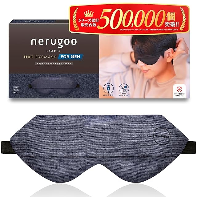 商品名:nerugoo[ネルグー] ホットアイマスク 充電式 何度でも繰り返し使えるアイマスク【男性用おおきめサイズx「MONOQLO」2024年年間総合ベストバイ受賞】 プレゼント (デニム)