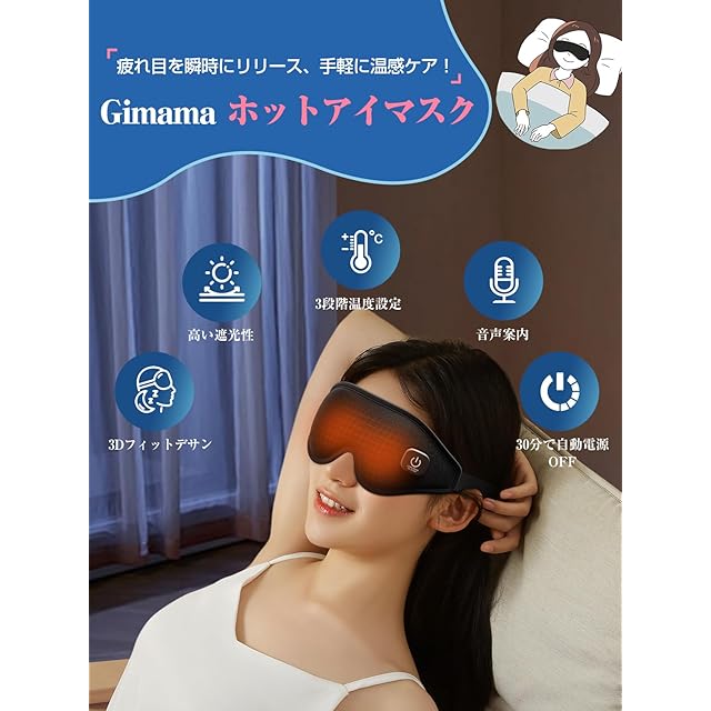 【音声ガイド+3段階温度調節、誰でも簡単に使える】従来の2段階調節の製品とは異なり、Anycee ホットアイマスクは独自の3段階温度モードを搭載。高温は目の疲れを素早く解消、中温は暖かく快適ながら過熱の心配なし、低温は睡眠時の柔らかなケアを提供します。また、音声ガイドを搭載しており、電源のオン・オフや温度調節が音声で簡単に確認できます。アイマスクの温かいケアを閉じた目で楽しみながらでも、誤操作によるストレスなく正確にコントロールできます。30分自動オフ機能で寝落ちしても消し忘れる心配がなく、身も心もリラックス…ぐっすり安眠できます。Anyceeで、テクノロジーと快適さが融合した新しいリラクゼーション体験を手に入れましょう。