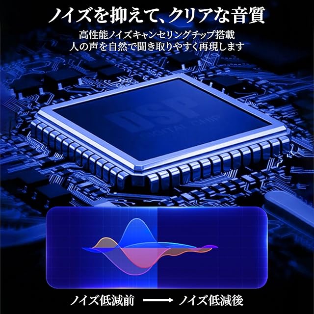 【ノイズ低減で、クリアな音質】雑音を抑える専用チップを搭載し、人の声だけをしっかり拾うように音質を最適化。テレビの音、外出先での会話なども、ハッキリと聞き取りやすくなります。