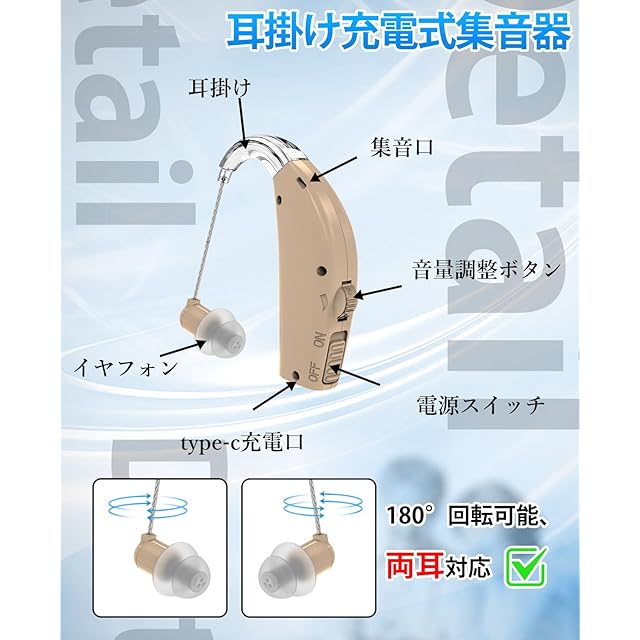 集音器 高齢者 【2025年新進化】 しゅうおんき 高齢者集音器 30倍音増幅 音声拡聴器 DSPテクノロジー 音声拡聴器無段階音量調整 両耳対応 耳掛け型 音声拡聴器 聴覚補助 USB-C充電 超軽量 高感度 日常防水 簡単操作 敬老の日 母の日 父の日 プゼントType-C充電ケーブルと日本語取扱説明書付き
