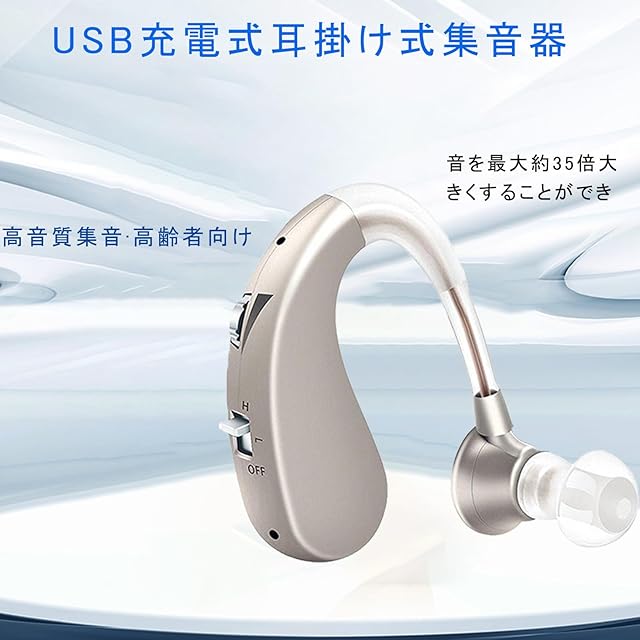 【高出力耳かけ型集音器】人の声と周囲の音を区別し、音声の明瞭さを向上させ、最大約35倍に音を増幅。