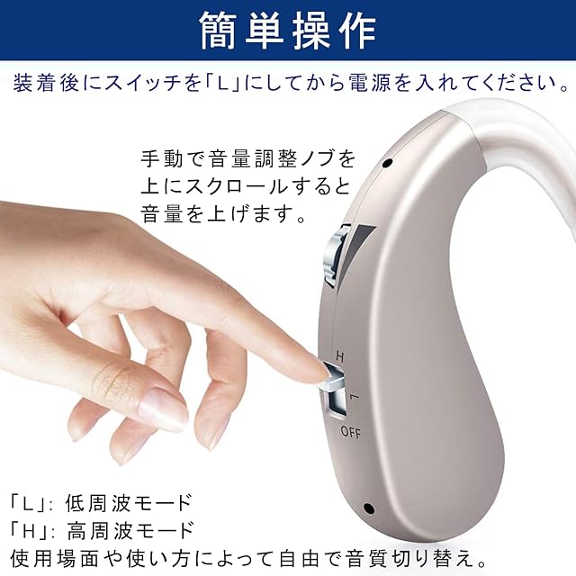 【音量調節・2つのモード】手動で音量調整ノブを上にスクロールすると音量を上げます。下にスクロールすると音量を下げます。モード切替ボタンで3つのモードが切り替えられます、使用シーンや周囲の状況に合わせて快適なモードを自由に選ぶことができます。(ハウリングやエコーを防止するため。装着後にスイッチを「L」にしてから電源を入れてください。)