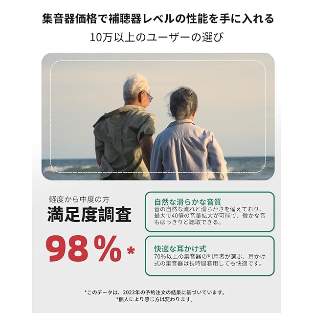 ✅最大約30倍に音を大きくする充電式集音器。話し声やテレビの音を大きくしてくれます。片耳でも十分な収音効果がありますが、両耳セットで利用するとより安定して聞き取りやすくなります。