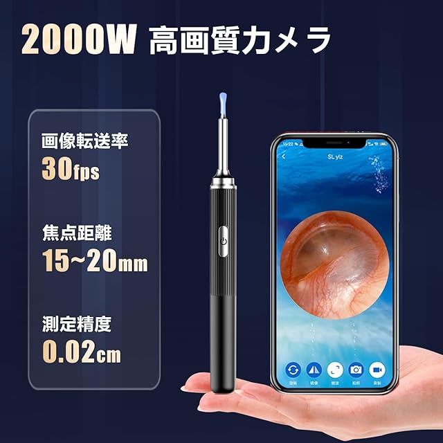 商品名:耳かき カメラ付き【2025年革新版&LEDライト付き&2000万画質】8点セット 耳掃除 3.5mm極細レンズ 左右反転機能 イヤースプーン IP67防水 WIFI接続 9点セット耳垢除去 耳垢クリーニング 耳掻きカメラ 録画 写真 Type-C充電 子供 大人 お年寄り iOS&Android対応 日本語取扱説明書付き