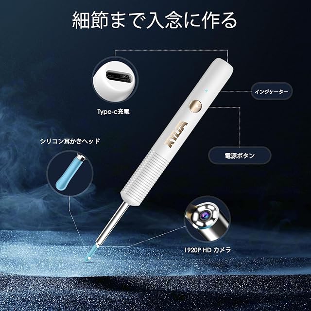 商品名:【2025新登場】Xylla 耳かき みみかき カメラ付き カメラ付き耳かき 耳搔きカメラ 1920Pカメラ IP67防水 耳かきライト 耳かきピンセット 耳ケア 耳垢除去 耳垢クリーニング Type-C充電式 イヤースプーン 耳掃除 内視鏡付き耳かきカメラ WiFi接続 耳垢 耳鏡 専用APP iPhone/ipad/Android対応 大人子供ペット用 プレゼント 日本語取扱説明書付き ホワイト
