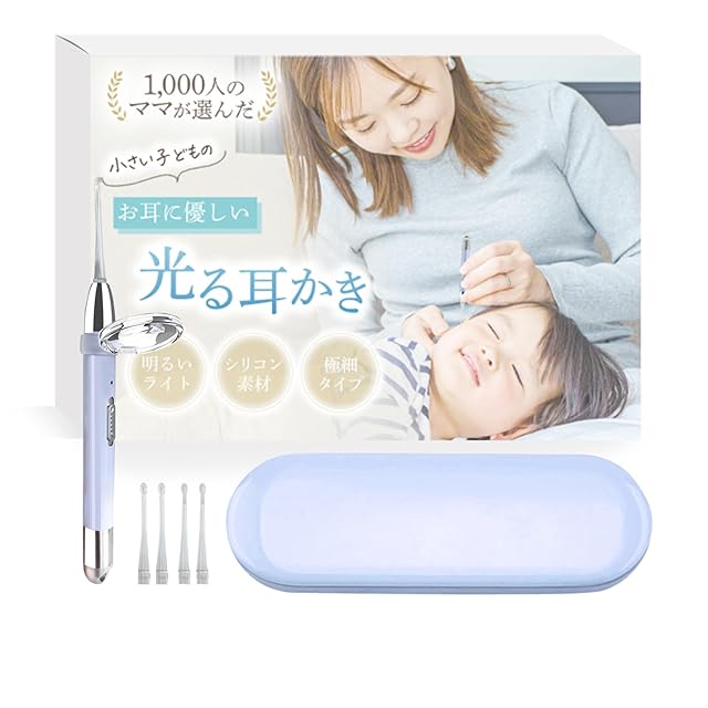 1,000人のママたちに選ばれたこの耳かきは、親子の耳掃除をもっと安心・快適にするために作られた商品です。 ・明るいライト付き 耳の奥まで見える明るいLEDライトを搭載。 暗い部分でもしっかり確認しながら耳掃除ができます。 目を凝らす必要がなく、細かい汚れも逃しません。 ・シリコン素材で安心設計 先端部分には柔らかいシリコン素材を使用。 ・極細タイプで届きやすい 小さな耳にもフィットする極細形状の先端が、耳の奥や細かな部分にもしっかり届きます。 効率よく、簡単に掃除できる設計です。 ・安全性を重視したデザイン 滑りにくい持ち手や、角が丸い形状に仕上げることで、小さな子供の耳掃除をより安全にサポートします。