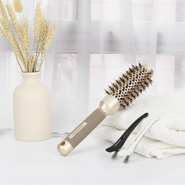 ヘアケアとスタイルアップ!<br><br> <b>【商品仕様】</b><br><br> サイズ:約25.5×6.8×3.2(cm)<br> 材質:ABS樹脂、アルミ合金、天然豚毛、ナイロン<br> 重量:101g<br>付属品:4xヘアクリップ<br><br> <b>【メリット】</b><br><br> 1.このプロのロールブラシを使うと、お時間と手間、お金を大幅に節約できます!<br> 2.カールブラシ中に通風孔があり、髪をブローするときに風を通って髪に均等に熱を当て、簡単にスタイリングできます。<br> 3.熱は髪の水素結合を壊し、髪を柔らかく、艶やかで縮れ毛をなくなります。<br> 4.頭皮と根元をふんわりさせることで、柔らかくボリューム感のあるスタイルを実現します。<br> 5.人間工学に基づいたハンドルを採用して、天然豚毛ブラシなので静電気防止、ナノセラミックイオン技術を兼ね備え、あらゆるニーズに応えるヘアブラシです。<br> 6.熱によって髪を柔らかくし、扱いやすくスタイリングしやすくします。<br> すばやく温まるセラミックブラシは、髪を乾かす時間を短縮し、ダメージも防ぎます。 7.髪を引っ掛けず、髪を引っ張らず、髪を絡ません!<br>