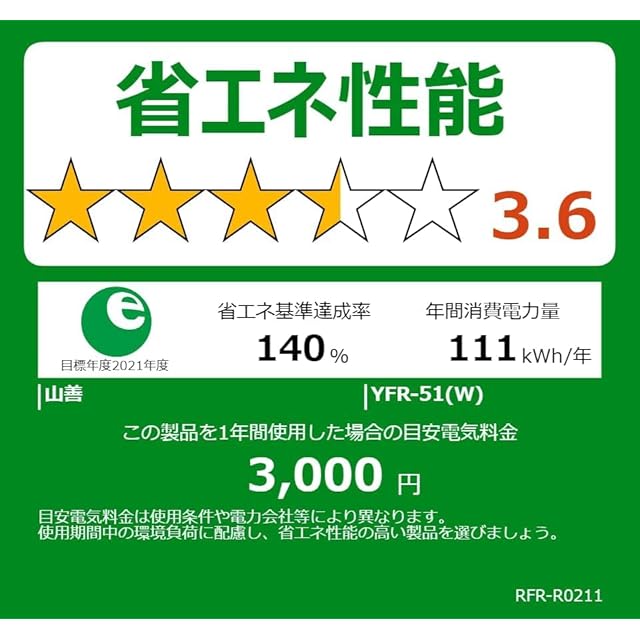 商品名:[山善] 冷蔵庫 46L 右開き YFR-51(W) ホワイト 一人暮らし 小型 1ドア 静音 省エネ 製氷スペース付き