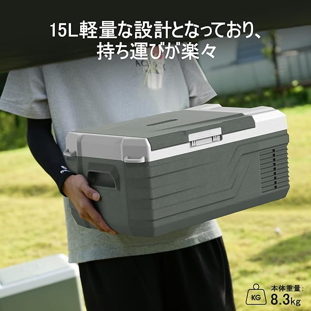 【一人暮らしにぴったりの容量】15L車 冷蔵庫は、収納力に優れながらもコンパクトで持ち運びやすい冷蔵庫です。外寸は60.2×32.8×26.3cmで、重量もわずか8.3kgと軽量であり、持ち運びが容易です。小型車やコンパクトカーでも簡単に取り付け可能なサイズとなっております。限られたスペースにも設置しやすく、車中泊やキャンプなどのレジャー、普段の買い物のほか災害時にも食品や飲み物を冷却できます。