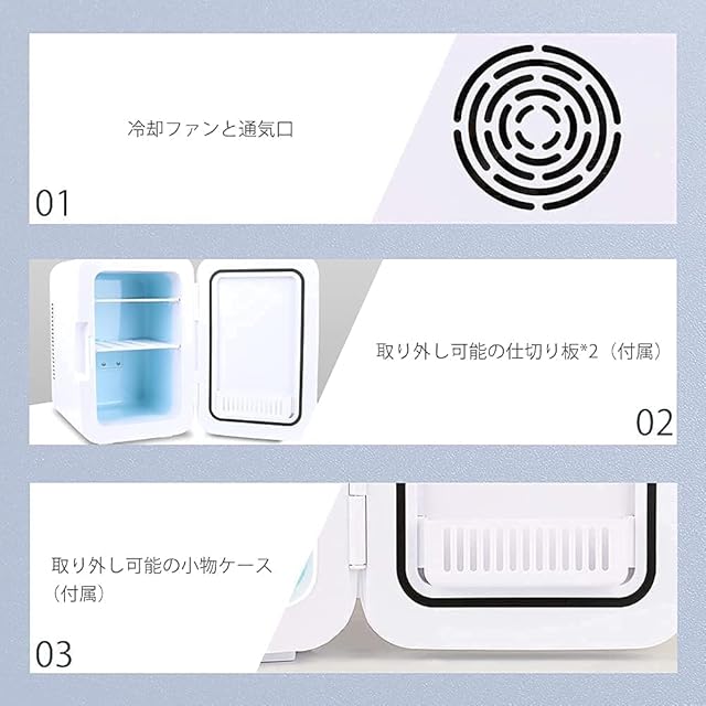 【コンパクト・10L大容量・持ち運び便利】Msakeミニ冷蔵庫はコンパクトの上で最大限に空間を利用しました。庫内容量は10Lで、350ml缶8-10本あるいは500ml缶4-5本を簡単に入れます。それに、取り外し可能な仕切り板(2枚付属)を使って、スペースを調節できます。ドアポケット(1枚付属)はお菓子、調味料など小物を収納できます。ポータブル冷蔵庫は約3.9KG、後ろにハンドルがあるので、片手で簡単に持ち運びられて、車、旅行、寝室、キッチン、寮にいつでもどこでも使用できます。