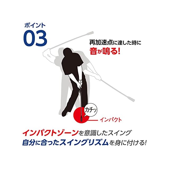 最加速点で音「カチッ」が鳴るので、インパクトゾーン付近で鳴るようにスイングリズムを整えることで、飛距離UPの練習になります。