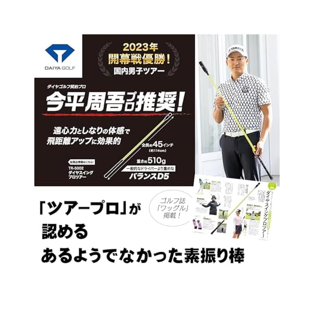 ダイヤゴルフ(DAIYA GOLF) スイング練習器具 ダイヤスイングプロツアー ツアープロが認めるウォームアップギア 素振り屋内ゴルフ練習道具 練習用クラブ ゴルフ練習用バット ゴルフスイング練習機 ゴルフ棒 しなり 飛距離アップ バランスD5 約45インチ TR-5002 イエロー