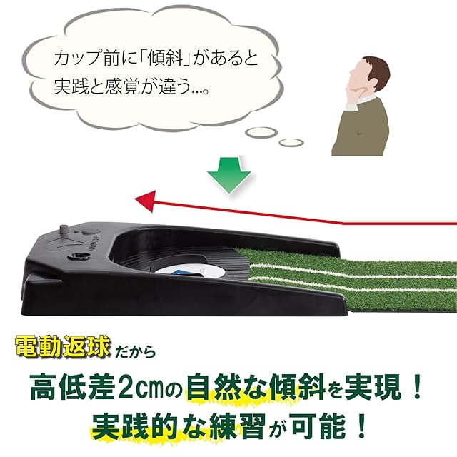 「返球距離調節ボリューム」を搭載することで、本品の最大長約2.5mに合わせた自動返球だけでなく、1m程度のショートパットのアドレス位置への返球調整も可能。